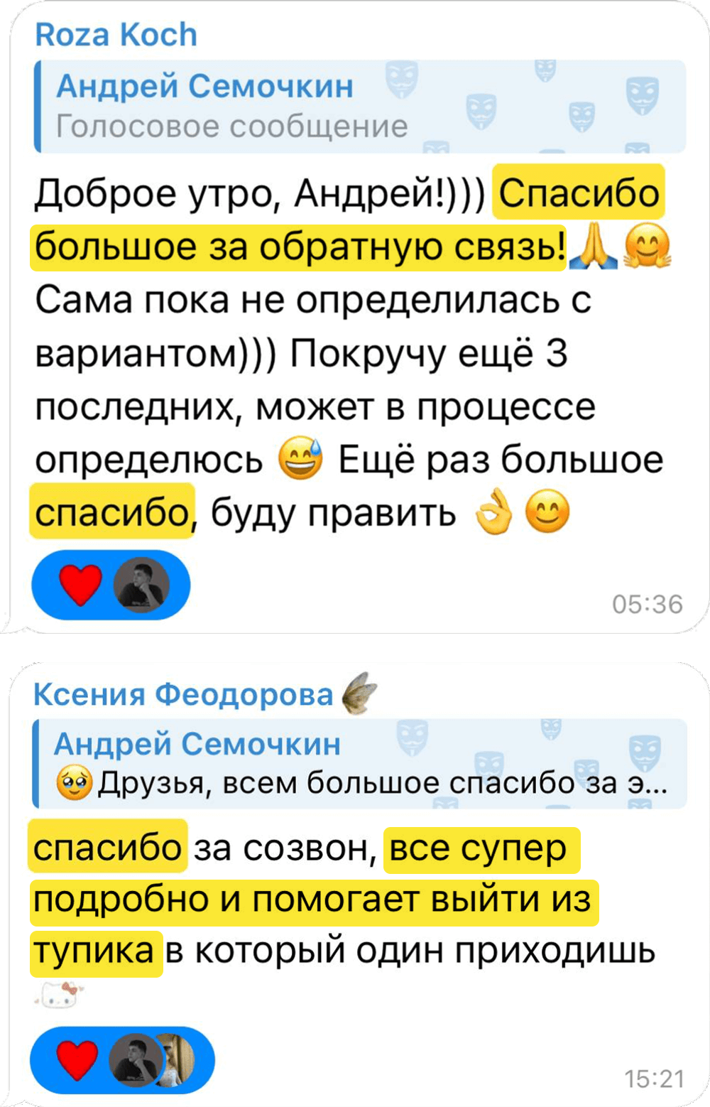 Если у тебя тариф с обратной связью, то я буду отвечать на вопросы в чате нашей группы, а также подробно разбирать домашние задания на звонках. Всего будет минимум 6 групповых звонков в Zoom.